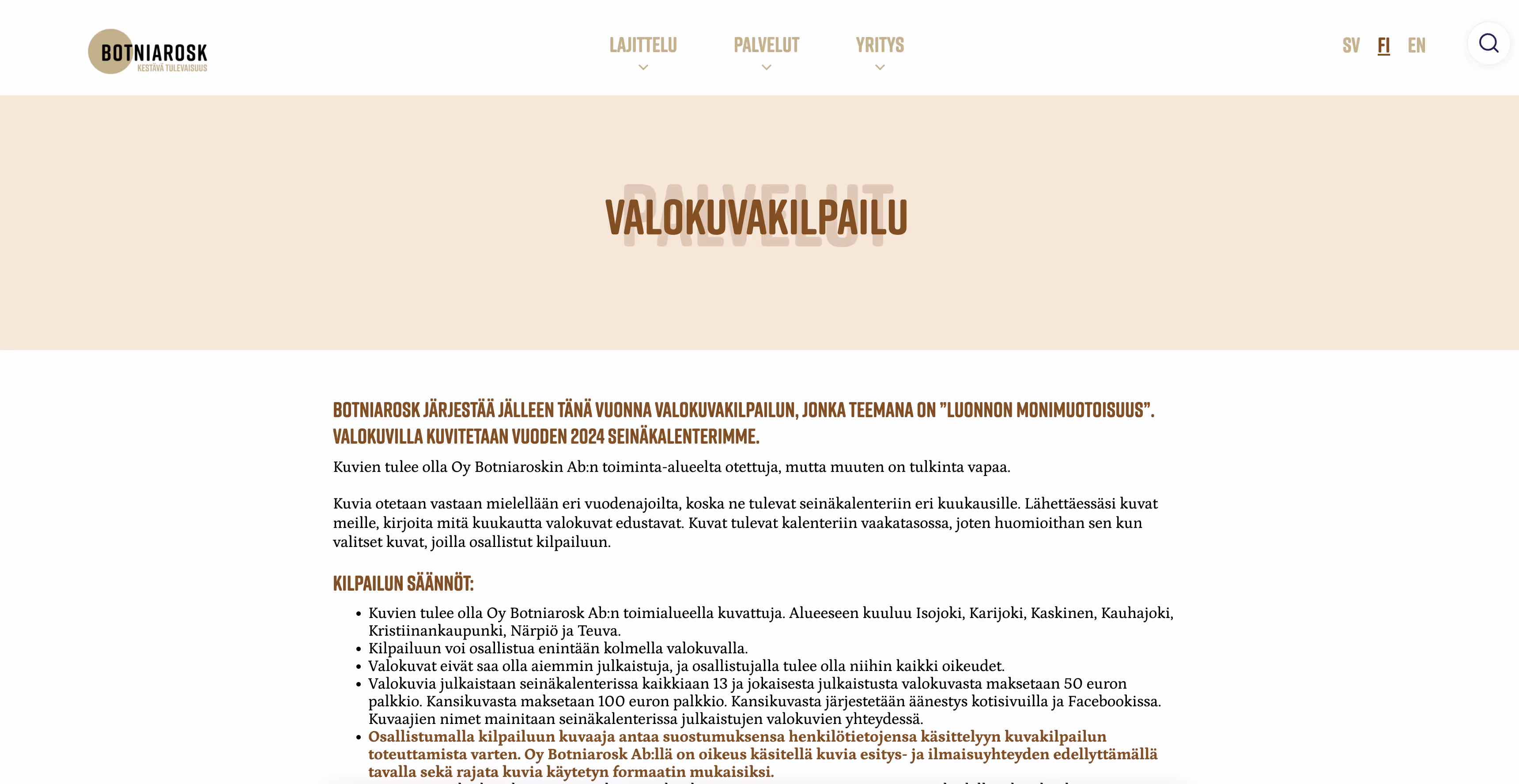 The Botniarosk Waste Management Website is a dynamic and user-friendly platform designed to facilitate efficient waste management in the Ostrobothnia and South Ostrobothnia regions of Finland. Owned by seven municipalities - Isojoki, Karijoki, Kaskinen, Kauhajoki, Kristiinankaupunki, Närpes, and Teuva - Botniarosk plays a pivotal role in environmental sustainability by promoting responsible waste disposal and recycling practices. This project involved the creation of a modern, informative, and accessible website to enhance public engagement and streamline waste management processes.